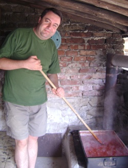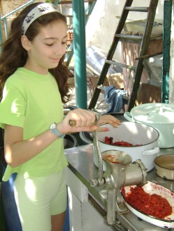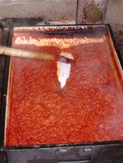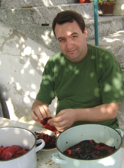 Първоначалната подготовка е малко неприятна и за градски чеда като нас, не е особено привлекателна. Още докато белех чушките, си мислех, че това е най-гадната работа в целия процес, но после, като се захванах с меленето на доматите, реших, че ето това е най-гадната работа. По-късно, отново щях да разбера, че съм сбъркал… Добре, че на най-младите всичко им беше на игра и че те съвсем за нищо ги нямат традициите, та моята малка дъщеря пое голяма част от онова, което традиционно се е смятало за мъжка работа – меленето на доматите.