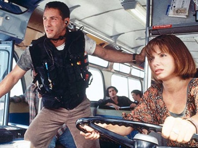 Вторият пример е популярният екшън Speed (Скорост). В него героят на Dennis Hopper беше поставил бомба под един автобус, а полицаите, начело с Keanu Reeves, се опитваха да спасят 10-ината пътници в автобуса. По време на разигралия се екшън бяха убити един пътник и 4-ма полицаи, бяха унищожени самият автобус, един самолет (с неизвестно количество екипаж на борда), половин летище, няколко метростанции, една мотриса и сигурно над 50 коли. Погромът беше жесток.