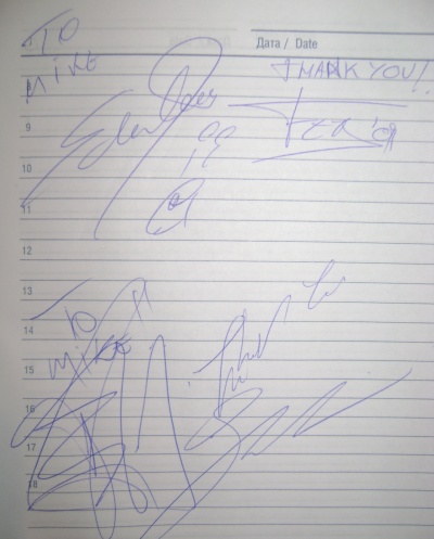 Аз съм винаги много щастлив, когато мога да присъствам на „домашен“ концерт в малка зала, защото се създава едно невероятно купонджийско настроение, а контактът между изпълнителите и публиката е много по-близък. Разбира се, възможността след шоуто да се видиш със своите любимци, да вземеш автограф и да се снимаш с тях, е изключително важен фактор за всеки истински фен. Моята реликва включва автографи от всички членове на бандата, с което съм много горд 🙂