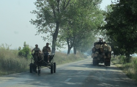 Пътят е второкласен – няма дупки, но е доста износен и колата друсаше доста. По-големият проблем беше, че целият път е осеян със села, които преливат едно в друго. На практика се движиш постоянно в населено място и разстоянието от 260 километра от Бекет до Сибиу го взехме за повече от 5 часа! Да не говорим, че местните се движеха основно с каруци, които направо задръстваха движението и на моменти беше много трудно да изпреварваме.