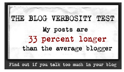 Другият тест, на който попаднах благодарение на Ваня, е предимно насочен към блогърите и изчислява доколко сме многословни. Аз и преди да се тествам, си знаех, че обичам да разказвам с повечеко думи онова, което искам да споделя, така че резултатът – моите постове са с 35% по-дълги от средно статистическите – никак не ме учудва. Мисля, че има някаква оптимална мярка, която е достатъчно описателна без да става досадна за читателя и аз се опитвам да я намеря. Твърде кратките постове казват твърде малко, а твърде дългите омръзват на читателя. Моето лично наблюдение е, че повечето блогъри пишат кратки постове. Щом моят резултат е само 35% по-дълъг от средния размер, значи съм уцелил точния размер.
